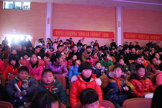 2015年1月11日上午,阜阳师范学校大礼堂内洋溢着孩子们的欢声笑语,“关爱留守儿童·共度新春佳节”公益活动启动仪式在这里举行,本次活动由阜阳市爱心公益志愿者协会承办,来自全市22所留守儿童较多的偏远中小学校的220名品学兼优或特困留守儿童参加了此次活动。阜阳市文明办、共青团阜阳市委、阜阳市妇联、阜阳市民政局、阜阳市教育局等单位领导出席启动仪式。阜阳颍东农村商业银行、阜阳师范学校、阜阳创伤医院和阜阳蓝天救援队为本次活动的成功举办提供了大力支持。