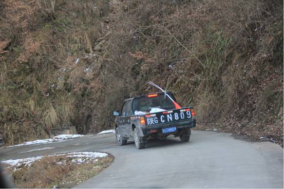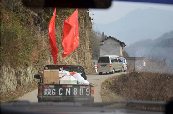 为节约行程,爱心车队翻越蜿蜒崎岖的“二娅子”山路回家,笔者在途中还看到车队下山时经过冰雪未消的弯道的情形。返回途中,车队在一户破烂瓦房门前停了下来,见一个满脸污垢的小孩正在门前玩耍,见到陌生人,孩子赶紧往屋里躲,没想到在门上被自己的爷爷拦住了,志愿者向爷爷询问了孩子的家庭的情况并把大家最后的几包干粮送了上去。