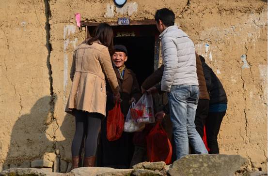 经过两个多小时的忙碌之后,大家顾不上吃饭、休息,又赶紧沿乡村公路向大山深处的长顺村进发。来到长顺敬老院后,大家向老人们送去了衣物和日常清洁用品。同时还为当地几名孤儿和留守儿童专程送去了“爱心温暖包”,其中包括衣服、帽子、手套、围巾、鞋子和一些学习用品和玩具。