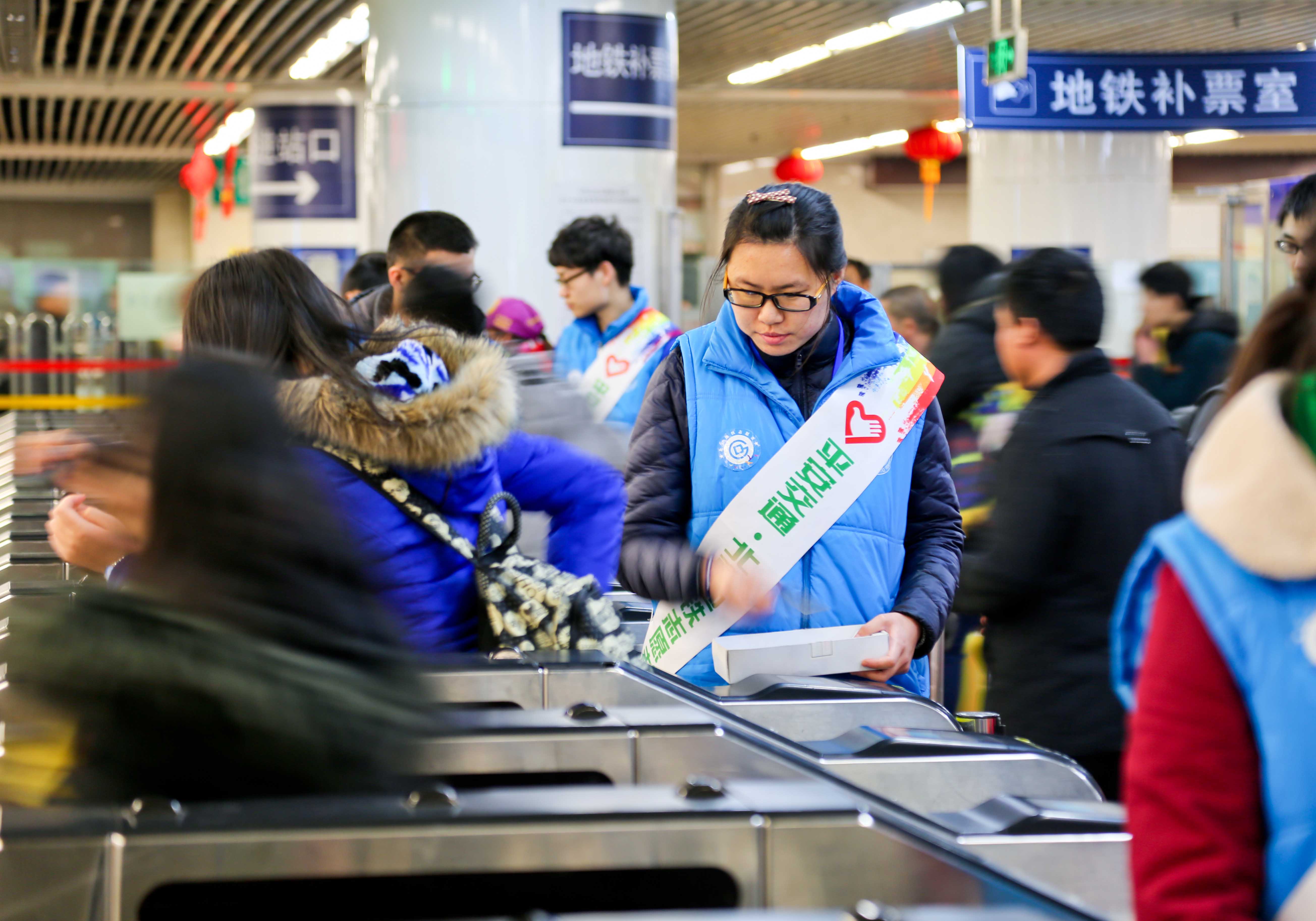 从2月4日北京团市委和市志愿服务联合会启动服务春运“暖冬行动”以来,很多志愿者就一直在岗服务。每天志愿服务从上午8点半开始到下午5点半结束,还有很多志愿者值班加班到更晚。每天到岗和离岗都要进行签到,确保各项志愿服务有序进行。站,对于每个志愿者来说,都是一个考验,一天累计站好几个小时对他们来说都是一个巨大的考验,匆匆的旅客来了又走,不变的依旧是他们服务的热情。“一天要站六七个小时,不觉得累吗?”当记者问第一年参加志愿服务的一位志愿者时,他这么说到:“一开始是比较累,站了两天就习惯了。”由于北京地铁票制改革,很多乘客不熟悉购票方法,不会用机器买票,或者对票价不清楚。志愿者都会耐心帮助解答,协助乘客买票,既方便乘客购票也减少了因不熟悉操作造成的排队拥堵。地铁闸道口是最容易出现拥堵的地方,又有很多外地旅客购买的是一次性乘车票,对于如何使用不是很了解,在闸机上刷卡和回收卡耗时很长,为了解决的和这个问题,志愿者人工回收乘车卡,并提前为旅客刷卡通过,大大增加了通过率。同时,地铁闸机经常出现问题,一旦有了故障志愿者第一时间通知报修,同时疏导旅客从其他的闸机口出站。