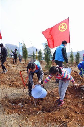 植树活动中,小志愿者代表向全市志愿者发出号召:倡议全市志愿者积极行动,身体力行、率先垂范,争做植树护绿的“先锋队”;广泛宣传、积极行动,争做植树护绿的“宣传员”;立足本职、以身作则,争做植树护绿的“守护者”。随后,植树活动正式开始,各“志愿家庭”热情高涨,志愿者们精神饱满,父母挖坑、填土、浇水,小志愿者们扶树、踩实,每植下一棵树,一家三口就一同为新栽的小树带上自己制作的家庭标识,并合影留念,活动现场充满了欢声笑语,劳动场面热火朝天。