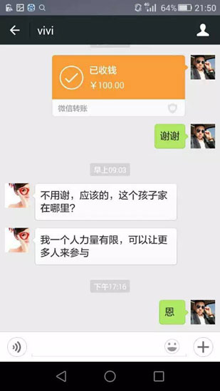 “我盯着医院,跟捐款的人联系的活儿就给洪姐了,好人热心人啊!”徐哥开着与王洪的微信,随时沟通情况。老事、年华、Z.S、陈三石、邵虎、洁、琳子、阿煌、元何、妙光……王洪的微信开始不停的响,微信红包、微信转账的提示频繁跳出来。“50、100、200、300、500、700、1000……”钱不断汇入王洪的微信账户上,她攒一攒,再一起打到孔如杰的银行账号上。