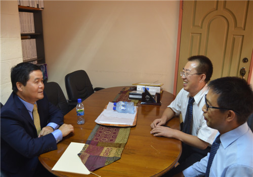 董大使还看望了两位汉语教师,了解他们的工作与生活情况,勉励他们继续为促进中牙教育文化交流作贡献。两位教师对董大使的关心表示感谢。