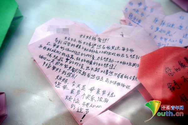 “孤独寂寞的时候,也只能对着您与哥哥的合影倾吐心声,因为家里都没有在您临走前为你我拍一张幸福每(美)好的照片。妈妈,今天是母亲节,祝您母亲节快乐,没有烦恼,开开心心的(地)过节。”这是小童(化名)在母亲节时写在祝福卡片上的话。