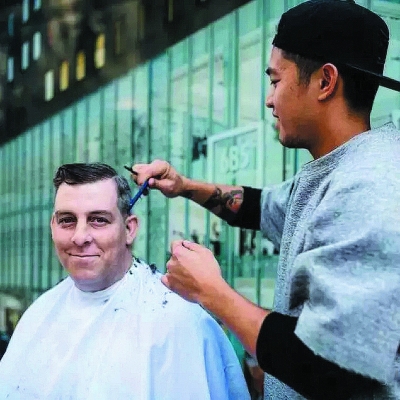“ 如果你在一个周日下午,路过纽约的街角,你可能会看到一个或者很多个流浪汉,身边有一个亚裔小伙,把一整套理发工具耍得龙飞凤舞。