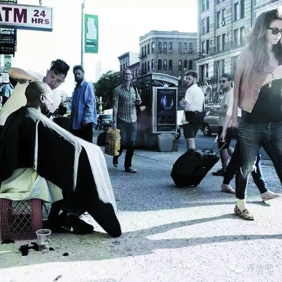 “我想把那种感觉带回纽约。”于是,每一个星期天,他都会带上整套的理发工具,出现在大街或者小巷。