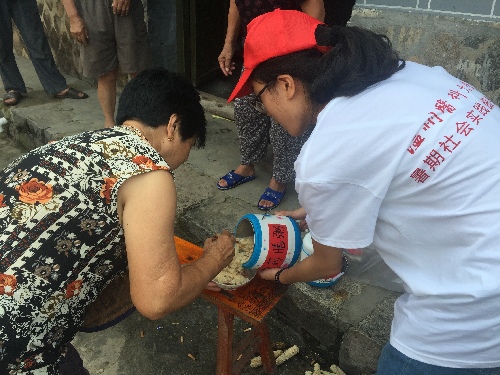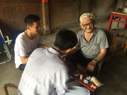 2015年7月15日,温州医科大学“溯生命之源,敬医者之业”暑期社会实践队一改以往只在社区镇上设点,居民前来义诊的模式,深入屿北千年古村,将义诊、提供爱心药膳粥、老年慢性病宣讲和建立健康档案相结合,针对身患重疾的空巢老人逐家开展入户活动。