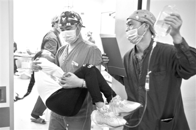 做完手术后,医生把孩子抱回住院病房。 沈加红 摄