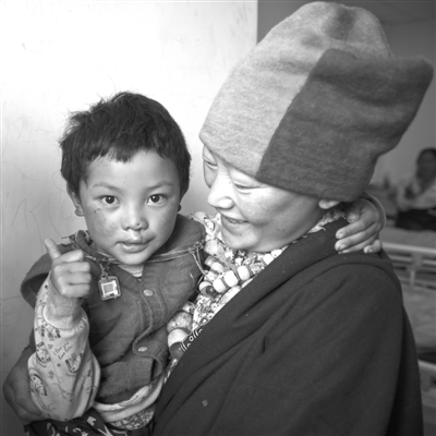 唇腭裂治好后,小扎西给自己看病的大夫竖起了大拇指,母亲的脸上也露出了久违的笑容。 沈加红 摄