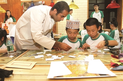 自8月3日起,江宁织造博物馆第二期文博夏令营如期开幕。而记者了解到,第二期增加了一个全新环节,那就是来自新加坡、印度尼西亚、马来西亚等国留学生志愿者也加入了本次夏令营。昨天,记者来到活动现场时,正看到一位留学生志愿者在教小朋友们折纸花。随后,志愿者还教孩子们拼起了“龙袍拼图”,孩子们根据馆藏的云锦龙袍,在拼图中了解了南京云锦的图样花色。记者了解到,本次文博夏令营年龄层次分布在10-14岁,20位小营员在了解了博物馆历史文化知识的基础上,将自己感兴趣的博物馆元素以各种形式表现出来,而本周日,孩子们将举行汇报演出,秀出自己学习的成果。