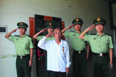 7月26日,湖南师范大学四位武警国防生队员,走访慰问五月份被关爱抗战老兵公益基金审核认定的抗战老兵李湘炳。