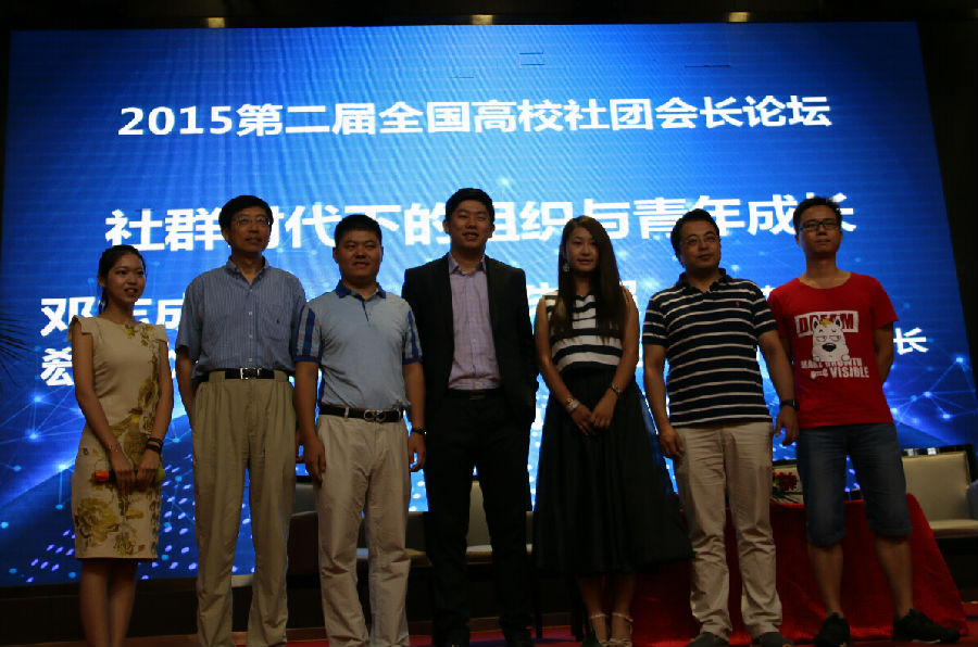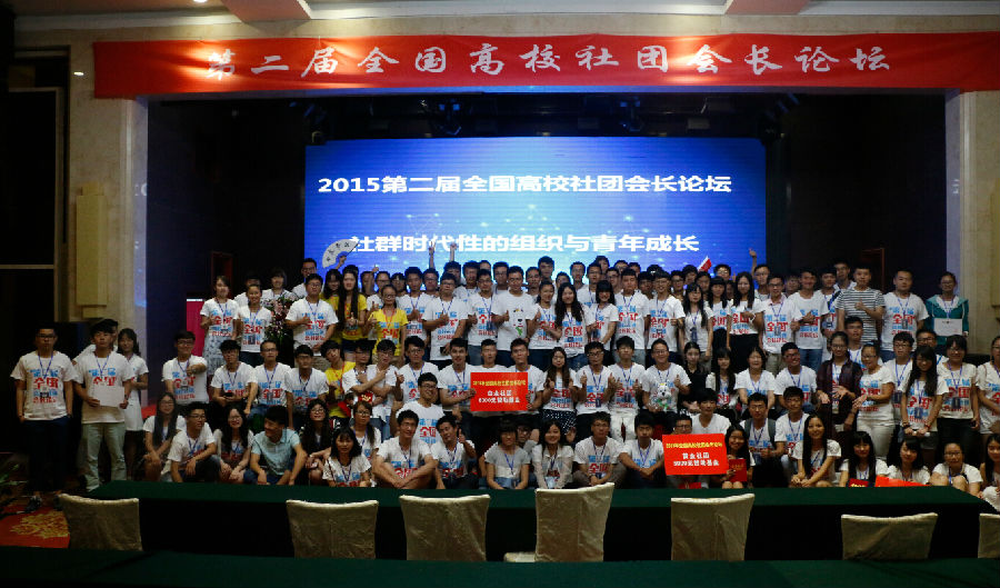 2015年8月21日,第二届全国高校社团会长论坛在武汉盛大启幕。本届会长论坛以“社群时代下的组织与青年成长”为主题,紧紧聚焦新时代下的中国高校组织发展与青年成长。数位社会知名人士以及嘉宾与全国300位全国优秀组织青年精英共同宣布论坛开幕。