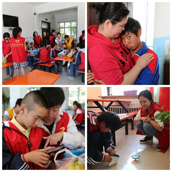 中国公益在线(公益记者贾艳蒙)黑龙江省北安站讯:2015年9月6日北安市阳光志愿者协会组织30名志愿者,来到位于北安市东南角的北安市特殊教育学校(以下简称特教学校),看望这里新入学的孩子们,特教学校的学生们都是一些聋哑,智障,自闭,唐式综合症,孤儿等,他们的家境都很困难,阳光志愿者协会已经坚持一年多的时间,每个月都会来看望这里的孩子们,这次给孩子们带来了八月节的月饼还有各种水果,以及学习用品,由于学校放暑假,已经一个多月没来了,志愿者们都非常的想念和牵挂这里的孩子们,刚刚开学就马上来看望孩子们,学校的王校长介绍:目前来上学的孩子有四十名,还有一些外地的孩子没有送过来,因为学校的教学方式先进科学,这些孩子在学校里生活能力及沟通能力都会得到很大的提高,所以现在学校学生越来越多。