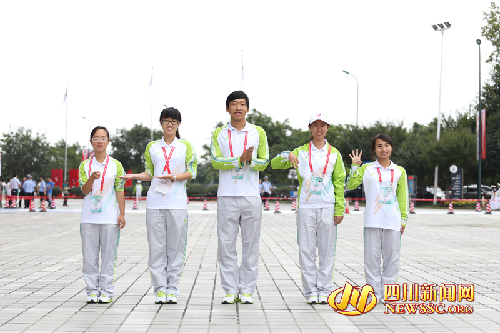 “小青椒”四川青年志愿者们用手语摆出“四川欢迎您”(从右到左)。