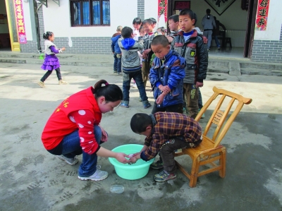 港华义工教孩子们养成良好的卫生习惯
