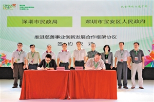深圳市民政局与宝安区政府签订《推进慈善事业创新发展合作框架协议》。本报记者 李立治 摄