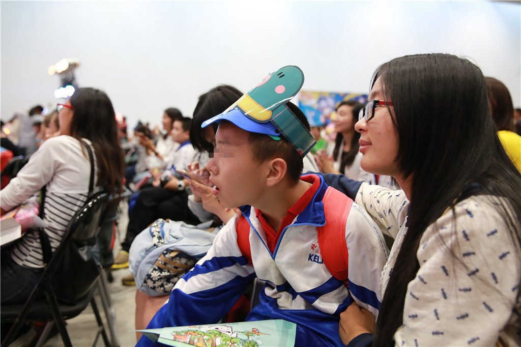 活动现场,有些孩子坐在舞台前聚精会神地看着自己喜爱的动漫人物,一看就是半天,不愿离开;有些孩子则带着志愿者跑出很远,伸出双手触摸这些美丽的精灵,对每一个动漫造型都兴趣百倍;还有的孩子竟然变成了追星族,拉着志愿者给他们和每一个动漫人物拍照留念。志愿者们陪伴在孩子们的身边与他们耐心交流,彼此分享,相互信任,孩子们脸上露出灿烂的笑容。