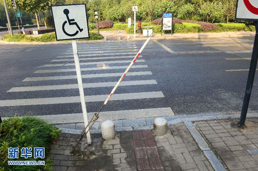 安徽合肥市经开区一盲道上方斜横着一条入地钢索(10月11日摄)。中国有世界最大的盲人群体:2014年的统计数字是500万,还有数以千万计的视力残疾人。中国已经有全球长度最长、分布最广的盲道。但有形的或无形的,外在的或心灵的障碍还是横亘在盲人和外部世界之间。 10月15日,又一个“国际盲人节”(白手杖节)到来之前,新华社记者带你走入盲人独有的平行世界,关注一个不仅这个日子应该关注的话题。新华社记者刘军喜 摄
