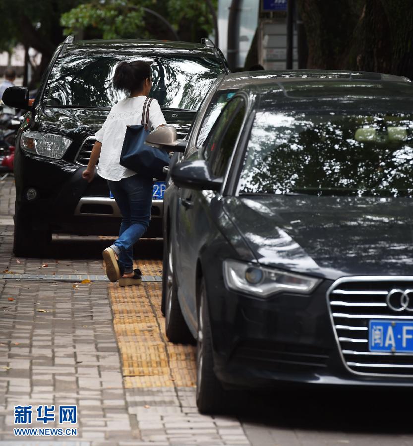 在福建省福州市鼓屏路,盲道不仅被汽车随意占用,还在近处“戛然而止”成了“断头盲道”(10月9号摄)。中国有世界最大的盲人群体:2014年的统计数字是500万,还有数以千万计的视力残疾人。中国已经有全球长度最长、分布最广的盲道。但有形的或无形的,外在的或心灵的障碍还是横亘在盲人和外部世界之间。 10月15日,又一个“国际盲人节”(白手杖节)到来之前,新华社记者带你走入盲人独有的平行世界,关注一个不仅这个日子应该关注的话题。新华社记者宋为伟 摄