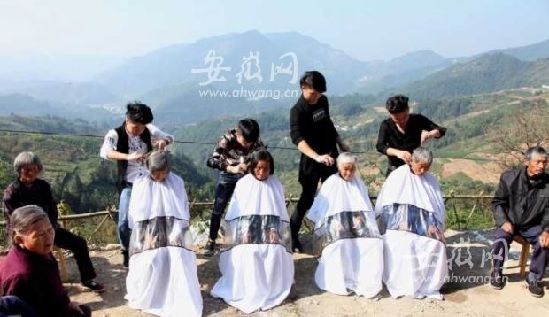 新安晚报安徽网讯10月20日,黄山市歙县杞梓里镇坡山村,73名老人在享受志愿者的贴心服务。坡山村地处皖南深山中, 1000多人口中有70岁以上老人73人。重阳节来临之际,志愿者们到深山为老人们免费拍“金婚照”、梳妆打扮、免费诊疗、煮长寿面,与他们欢度重阳节。