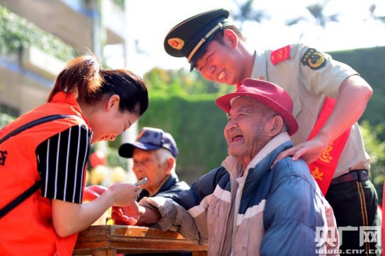 10月19日,在中国的传统节日“重阳节”来临之际,泉州市民政局、老龄办、福建省海警第二支队等单位组成青年志愿者服务队走进泉州市永春县东关镇,与镇里的高龄老人、空巢老人聊家常,了解老人日常生活和身体健康情况,帮助老人量血压、剪指甲、打扫房间、晾晒被褥、讲解日常疾病预防的常识,让老人提前感受到重阳节的温暖和快乐。(记者葛朝兴通讯员李晨)