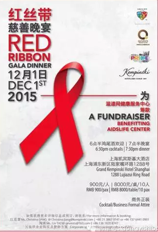 红丝带慈善晚宴是一年一度的慈善筹款活动。今年将在世界艾滋病日举办晚宴。慈善晚宴所筹集的款项将捐赠给滋道网健康服务中心,该中心为艾滋病患者于病毒携带者提供关怀与医疗咨询,并为患者争取社会支持、提升社会包容度、倡导社会反歧视做着努力。所有资助款项将用于提高当地因艾滋病住院的病人生活质量,如购买基本的生活用品、药品等。