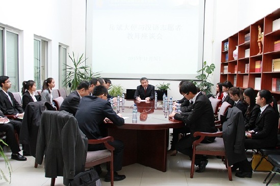 2015年11月5日,驻格鲁吉亚使馆大使岳斌与新到任汉语志愿者教师举行座谈,格自由大学孔子学院任教的中国教师参加。