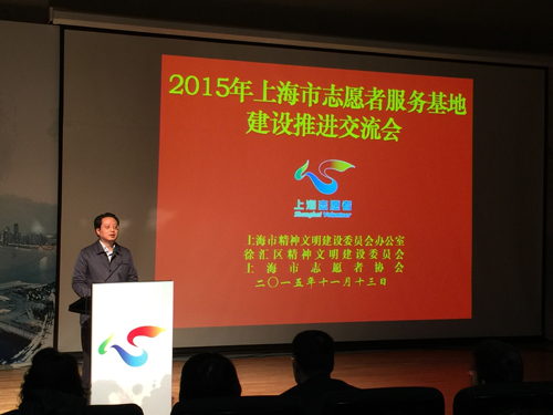 为交流展示上海市、区两级志愿者服务基地的文化建设和管理经验,推动志愿者服务基地建设再上新台阶,11月13日下午,上海市文明办、上海市志愿者协会联合徐汇区文明办,共同举办2015年上海市志愿者服务基地建设推进交流会暨徐汇区志愿者服务基地展示活动。上海市委宣传部副部长、上海市文明办主任、上海市志愿者协会会长潘敏出席会议并作重要讲话,上海市文明办副主任、上海市志愿者协会常务副会长姜鸣,徐汇区委常委、宣传部长、区文明委副主任吕晓慧,以及来自上海全市各区(县)、委(办)、上海市区两级志愿者服务基地、上海市级志愿服务总队的相关负责人共计400余人出席活动。上海市文明办志愿服务工作处处长、上海市志愿者协会秘书长陈麟辉主持会议。