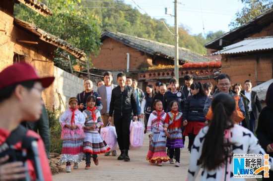 11月17日下午,颠簸了两个小时山路的黄晓明来到了第一所探访小学——麦地冲中心小学。面对一张张纯真的脸庞,他频频叮嘱:“是不是可以答应我每天都好好学习?”“是!”“是不是可以答应我要听话?”“是!”……与孩子们的一系列问答,让黄晓明瞬间化身为“晓明老师”,一副可爱大哥哥的样子,十分暖心。接过黄晓明亲手送过来的暖被,孩子们也给黄晓明戴上了红领巾作为感谢,最后大家还来了一张大合照作为纪念,临走前,黄晓明对着孩子们说:“以后要是有需要,可以跟晓明哥哥说。”随后,黄晓明前去当地贫困家庭送暖被,贫困户杨大姐家所住的简陋土砖房漏风漏雨,屋内完全没有一样像样的家具,唯一的电器只是一盏几瓦的灯泡,在了解其家中困难后,黄晓明当即捐助了一万元,杨大姐执意以家中的一大袋土鸡蛋作为回礼感谢,在数次推却后,黄晓明象征性拿了两个鸡蛋。