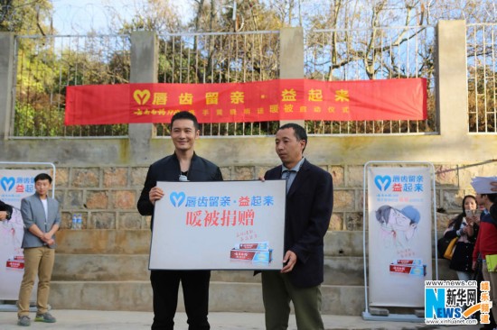 接下来黄晓明又赶赴三转弯苗族小学,黄晓明不但延续送暖被的公益环节,还给孩子们上了一堂生动的口腔护理课,用自己的唇齿做演示,萌呆逗趣寓教于乐。此外,黄晓明还与孩子们开展了一系列互动小游戏——抛篮球,有围观的家长在旁交流道:“没想到电视里的明星人这么好”。
