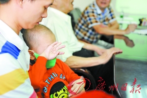 因为不耐烦,病童军军不断用小手揉眼睛。广州日报记者莫伟浓摄