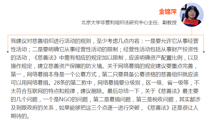 研讨会由全国人大常委、中慈联学术委员会主任、中国人民大学教授郑功成担任主持。研讨会上针对慈善组织的定义、法人地位、分类与认定标准;《慈善法》能否禁止个人公开募捐,个人自救的公募是否属于慈善募捐?《慈善法》对慈善财产是否应专章规定?草案“投资方案应当经决策机构组成人员三分之二以上同意”是否可行?《慈善法》如何保障慈善信托落地?对混合型信托的规定是否应加强?还就《慈善法》对慈善组织的税收优惠政策、信息披露的范围,以及机构的年报和年检制度等多个问题进行了研讨。