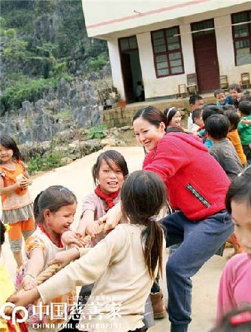 戏拍完了,江一燕的心却留在了小嘎牙村。一开始她捐物资、修学校,留意孩子们的需要,后来索性带着助理直接过去给孩子们上课。