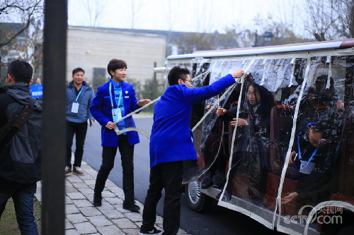 志愿者拉上电动车的避风帘。图片由移动三脚架志愿服务队提供。央视网(李文学 唐诗颖)