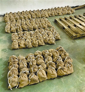 ▲讲求品质,启爱特殊订制了可装1公斤土豆的麻袋,并众筹了几十台电子秤,让每袋土豆都保持恒重。