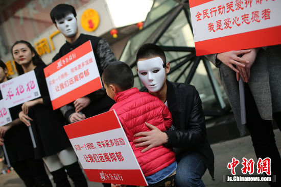 南京脑康中医院志愿者的行为艺术得到了不少市民的响应。 中新社记者 泱波 摄