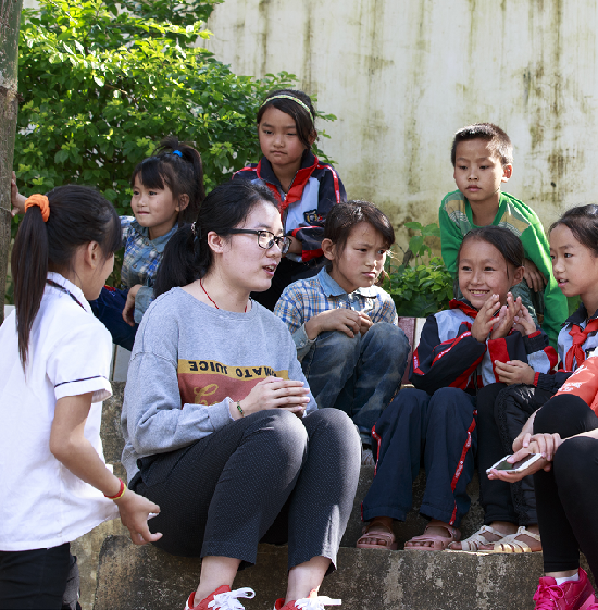 阁楼小学刘云虹为学生讲故事 程伟光摄
