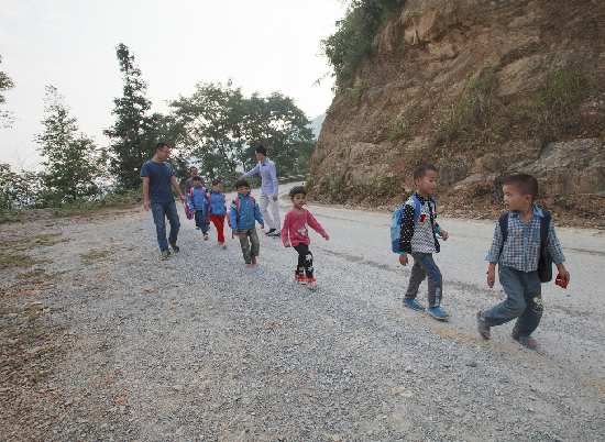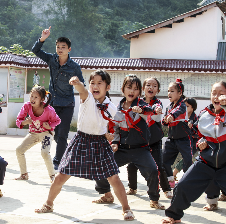 北回归线附近的广西百色市凌云县多一半人口住在山里,四面都是山,只在半山腰处有几户人家的村落很常见。“长期住在这里很郁闷。”一名中国人民公安大学支教团对记者说:“刚一来觉得环境很好,时间一长就不是那样了。被近在眼前的大山包围着,有种莫名的压抑感。”他们七名同学分别在沙里瑶族乡的弄塘、弄利、阁楼三所小学支教,学校都是在被山包围着的村落,校园很逼仄。学生家住得很分散,早上来上学,离校最远的小学生先出发,经过的村落同学加入,到校时,这条山路沿线的学生已经排成一小队了。当然,老师家访也只能重走小学生们的“上学之路”了。有父母外出打工的留守儿童,加上星星点点状的居住,导致了10岁才上一年级的学生得从识字和汉语拼音学起。校园里也没什么正规的体育设施。去年任驻村第一书记的林良亮四处募集,再自己动手安装,阁楼小学才有了像样点的篮球架。好在支教团来自公安大学,他们教军体拳、俯卧撑等无需器械的锻炼身体的方法,小学生们打小儿就能习得多样健身手段。
