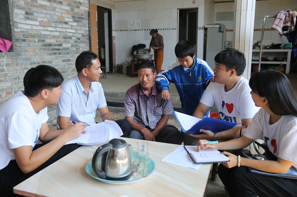 八月初高辰、郭笑妍跟随校长了解贫困学生的家庭状况。她们跟随车队顺着山路一直往深处去,路途颠簸,下过雨后的土路更加泥泞,有的是没有柏油的石子路,总之这样在车上心惊胆战的渡过了四十分钟后到达了帮外村,下车后几个身材瘦小肤色黝黑的孩子在路边热情的迎接她们。看到学生家是那种简陋的茅草房和吊脚楼、走在颤颤巍巍的木板台阶进入只有一盏小灯的小屋,室内没有其他家当,而这确实是学生生存的地方。当抬头看门口的墙上贴着这个学生获得的奖状时,她们即刻就下定决心,完成好教学任务,帮助大山里的孩子看到外面的世界。高辰上第一节地理导入课时问学生知不知道首都在哪里,同学们说是北京。下课后几个女同学围着她说:“老师,你有没有去过天安门,能不能给我们看看天安门的照片,我们真的很想知道天安门的样子。”山里孩子淳朴的眼睛就这样看着你,都是渴望,她当时心里想的就是一定要多给他们讲讲大城市里的故事,鼓励他们认真念书以后考上好学校。