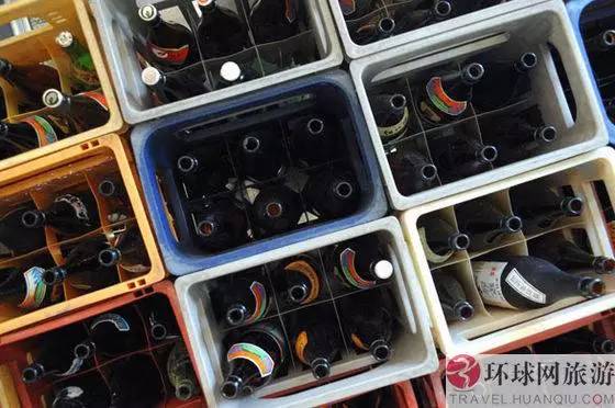 各种啤酒瓶子分类在一起。