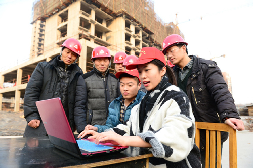 1月12日,河北邢台经济开发区青年志愿者任秀梅帮助农民工在网上购买车票。当日,河北省邢台市经济开发区开展“关爱农民工 情暖返乡路”志愿服务活动,组织青年志愿者深入外来务工人员集中的建筑工地,为农民工讲解网络购票流程,帮助农民工在网上预订车票,方便他们及时买到春节返乡车票。新华社记者 朱旭东 摄