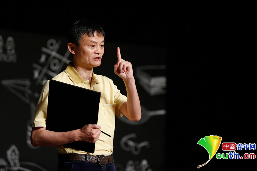 马云重回课堂,为获得首届“马云乡村教师奖”的100位教师们开讲。中国青年网记者 张炎良 摄