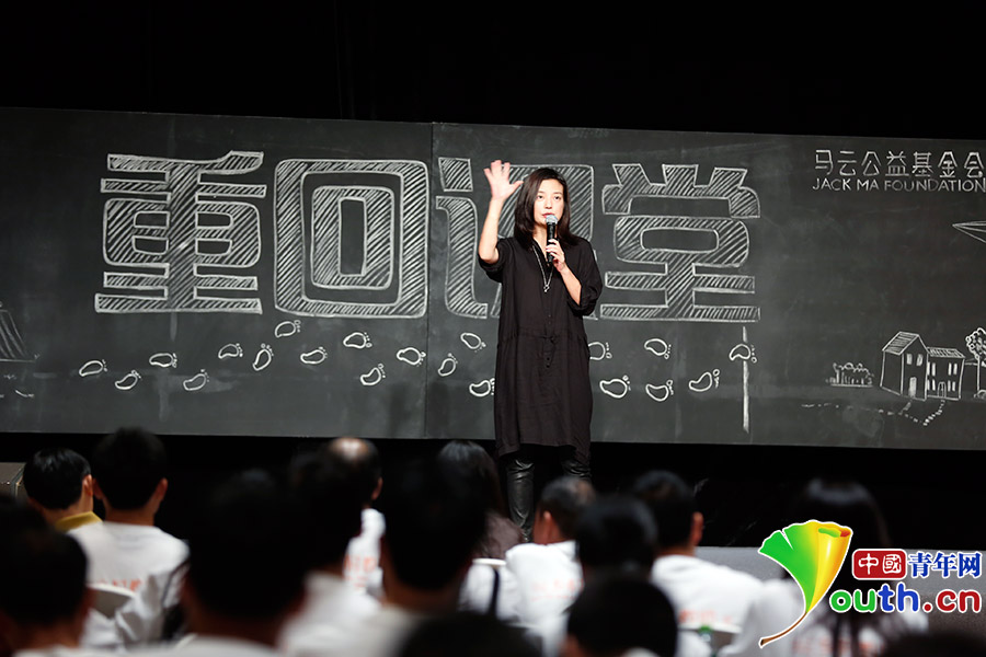 李连杰现场回答提问,获得乡村女教师点赞。中国青年网记者 张炎良摄