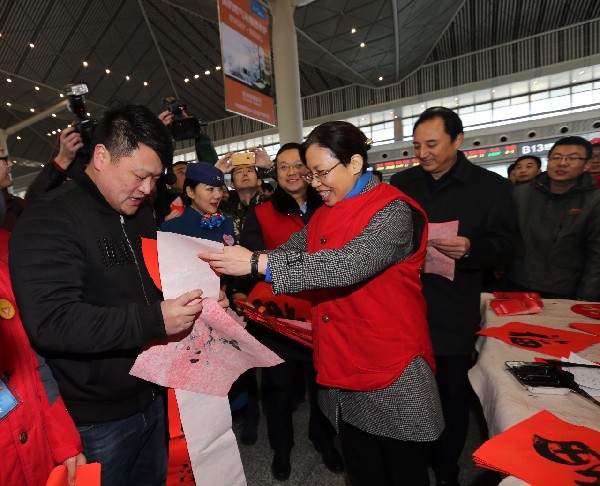 启动仪式结束后,与会领导同在岗志愿者一道,为重点旅客候车室开展了志愿服务活动,向旅客赠送“福”字、春联、安全出行书籍和文明乘车提示卡,并为西安北站“青年志愿者之家”揭牌,为正在服务中的春运志愿者送去了便携式腰包、水杯、围巾等服务保障物资,叮嘱他们注意安全、热情服务,树立良好的青年志愿者形象。