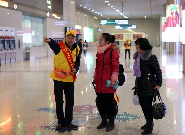 1月24日春运首日,陕西西安北站传来一阵热情洋溢的声音:“我们是光荣的志愿者,在每一个需要我的岗位上,遵守纪律,服从指挥,热情服务,真诚奉献……”在2016年中国青年志愿者服务春运“暖冬行动”启动仪式上,来自铁路等交通运输部门的300多名春运志愿者在这里激扬宣誓。团中央书记处书记汪鸿雁、团中央青年志愿者工作部部长杨松、全国铁道团委、陕西省发改委、省交通运输厅、省公安厅、省应急办、团省委等部门有关负责同志出席活动。