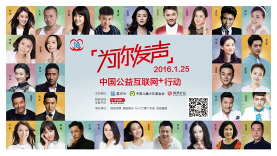 自从李克强总理在十二届全国人大三次会议上首次提出“互联网 ”行动计划以来,互联网与各个领域的融合发展已成为不可阻挡的时代潮流,正在加速推进中国经济社会发展的各个方面。在这样的时代背景下,中国儿童少年基金会、凤凰网公益频道、星河拾捌等共同发起“为你发声”中国公益互联网 行动,将于2016年1月25日在北京举行启动仪式。