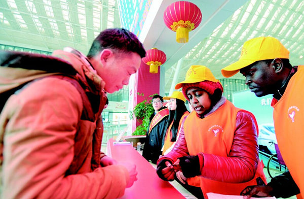 来自斯里兰卡的女博士佳妮,学的是对外汉语专业,昨天上午一直值守在前台,接待乘客的各种咨询。“很多乘客走到我面前询问时,发现我是外国人,都很惊讶,以为问错了人。”佳妮笑着说,直到她开口说“你好,我是志愿者”,许多乘客才回过神来。据介绍,考虑到春节期间到我国旅行的外国人不断增多,今年武汉铁路局首次在春运期间组织了一支外国留学生志愿服务队,共有12名不同国籍的留学生上岗。