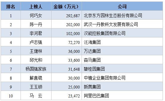 在百杰榜排名居首的,是北京东方园林生态股份有限公司董事长何巧女。她因承诺捐赠价值29.27亿元的东方园林公司股票,位居榜单第一;这也是该榜单自2011年发布以来,首次有女性位列榜首。同时,何巧女也是首个捐赠额度超过10亿元的女性慈善家。