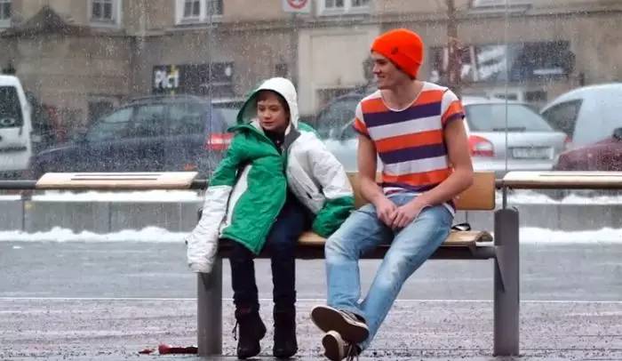 挪威公益团体SOS Mayday 制作了一支实验影片,安排一个11岁的小男孩独自坐在冬天的街头上,告诉他接触到的路人他的外套被偷了,然后在对面隐藏式摄影机下,观察路人会有什么样的反应,结果大家纷纷都脱下外套围巾给这个孩子…一直到影片的尾声,他们才说明这支影片是为了成千上万受战乱影响的叙利亚儿童募款,先让大家能够同理,进而产生恻隐之心,手法真的很巧妙!