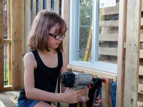 她拿起刀子,扛起电钻她要为流浪者建一个遮风避雨的小屋